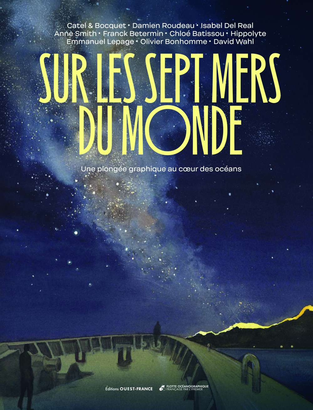 On the seven seas of the world offers an unprecedented look at the daily life and challenges of sailors, researchers, engineers and technicians who cross the seas to better understand and protect our oceans. This graphic novel is a vibrant tribute to their patience, endurance, audacity and wonder. The sea, as the preface of the President and CEO of Ifremer, François Houllier, « imposes humility » and reveals « the breath of the Earth, its deep memory, its still veiled share of the future ».